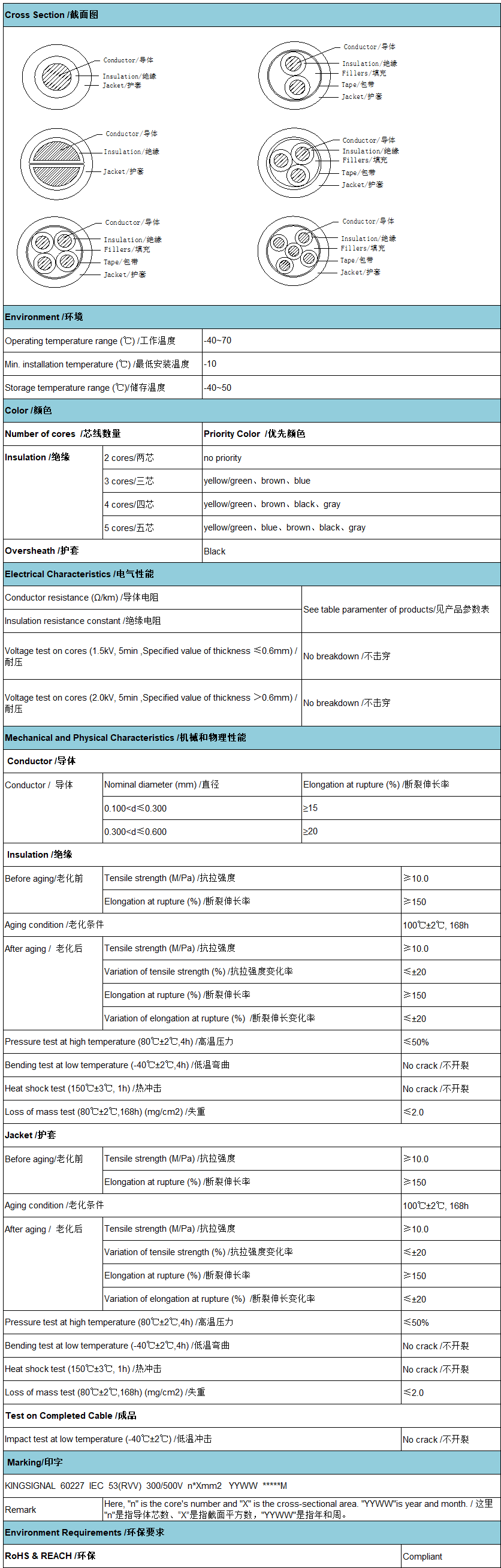 Parameters of products /產(chǎn)品參數                                                                        Model(型號):RVV、RYY