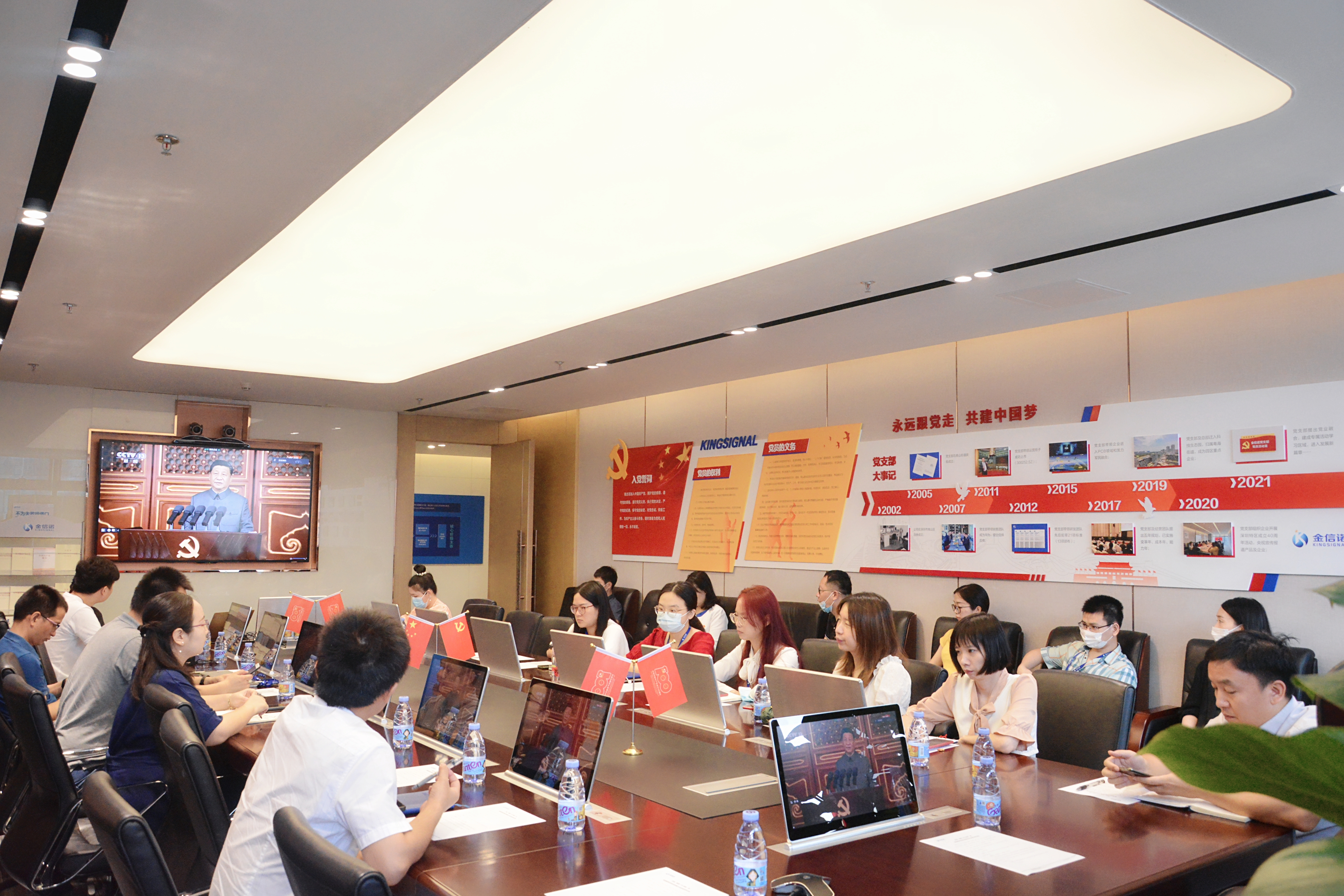 2021年7月1日上午8:00,金信諾集團在深圳灣總部召開(kāi)了慶祝“建黨100周年”活動(dòng),集團黨員同志全體參加,金信諾集團董事長(cháng)黃昌華出席了本此次活動(dòng)。