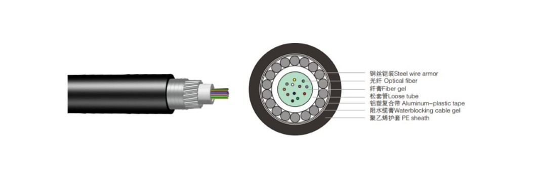 • 鋼絲鎧裝和鋁塑粘結護層結構使光纜具有良好的抗彎曲性能和抗側壓能力,還可防槍擊和鼠咬。