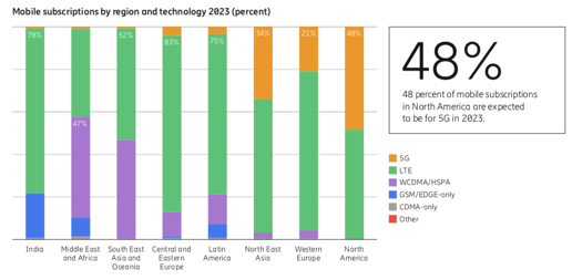 隨著(zhù)5G的逐漸普及,又會(huì )給運營(yíng)商帶來(lái)怎樣的變化呢?近期,愛(ài)立信發(fā)布的報告中給出了一些預測,到2023年5G用戶(hù)數將因為北美、西歐、東亞這三個(gè)地區的拉動(dòng)而大幅攀升,其中北美5G用戶(hù)比例將達到48%,東亞將達到34%(其中中國市場(chǎng)將貢獻巨大份額)。目前,中國、日本、韓國都計劃對5G投入大規模的建設,并均已在早期進(jìn)行了相關(guān)研究及布局。預計到2023年,全球5G用戶(hù)將超過(guò)10億。